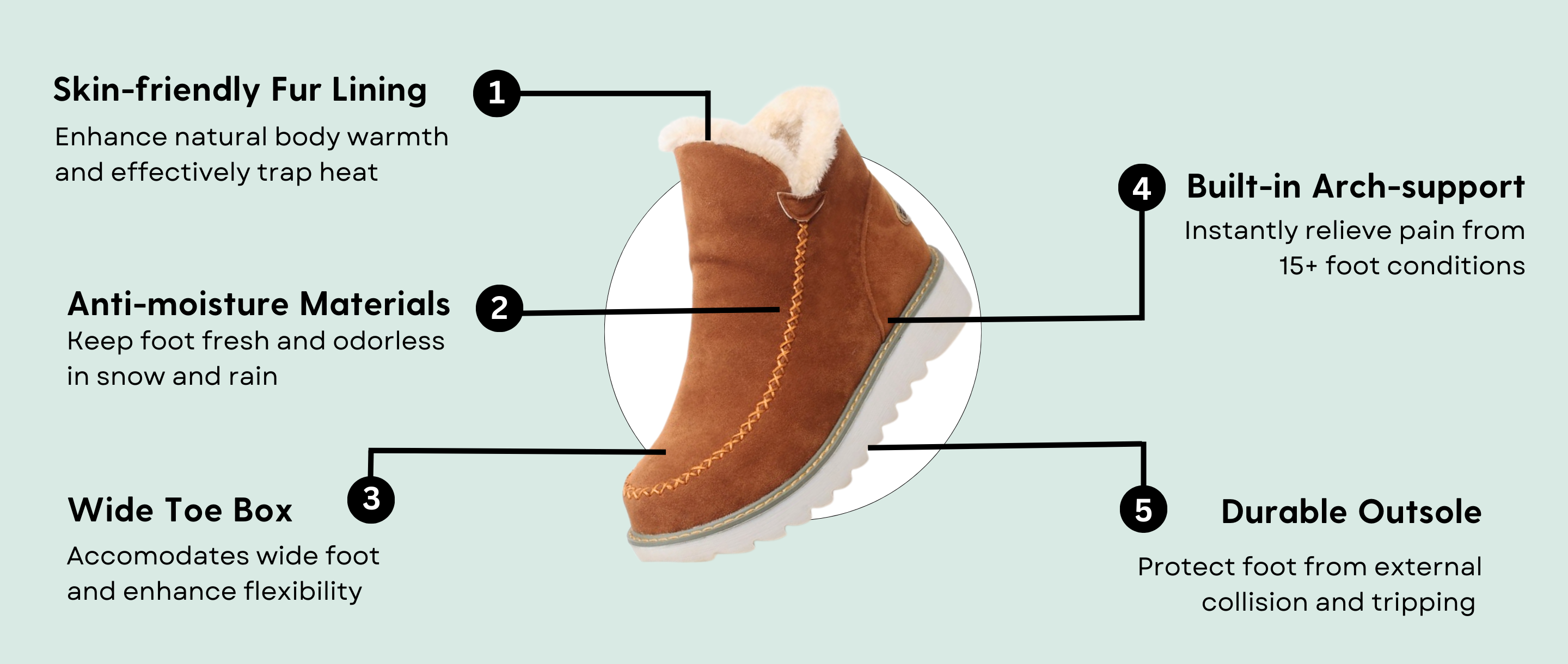 - Warm Plush Lining - Give extra warmth to the walking experience in the coldest weather.